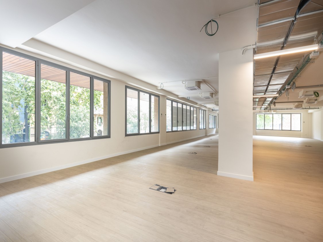 Oficina reformada en alquiler con acceso directo desde la calle, ubicada en la planta entresuelo de un edificio mixto. Espacio diáfano totalmente exterior, repleto de luz natural gracias a su orientación exterior, con vistas a la zona. Pre-instalación eléctrica. Climatización frío/calor privada VRV. Suelo técnico. Recubrimiento del suelo en parquet. Luminarias LED. 4 aseos privados, 1 de ellos adaptado. entorno comercial y residencial con buena oferta de transporte público y parking.  El precio incluye gastos de comunidad e IBI. CONSULTAR DISPONIBILIDAD Y CONDICIONES ECONÓMICAS.